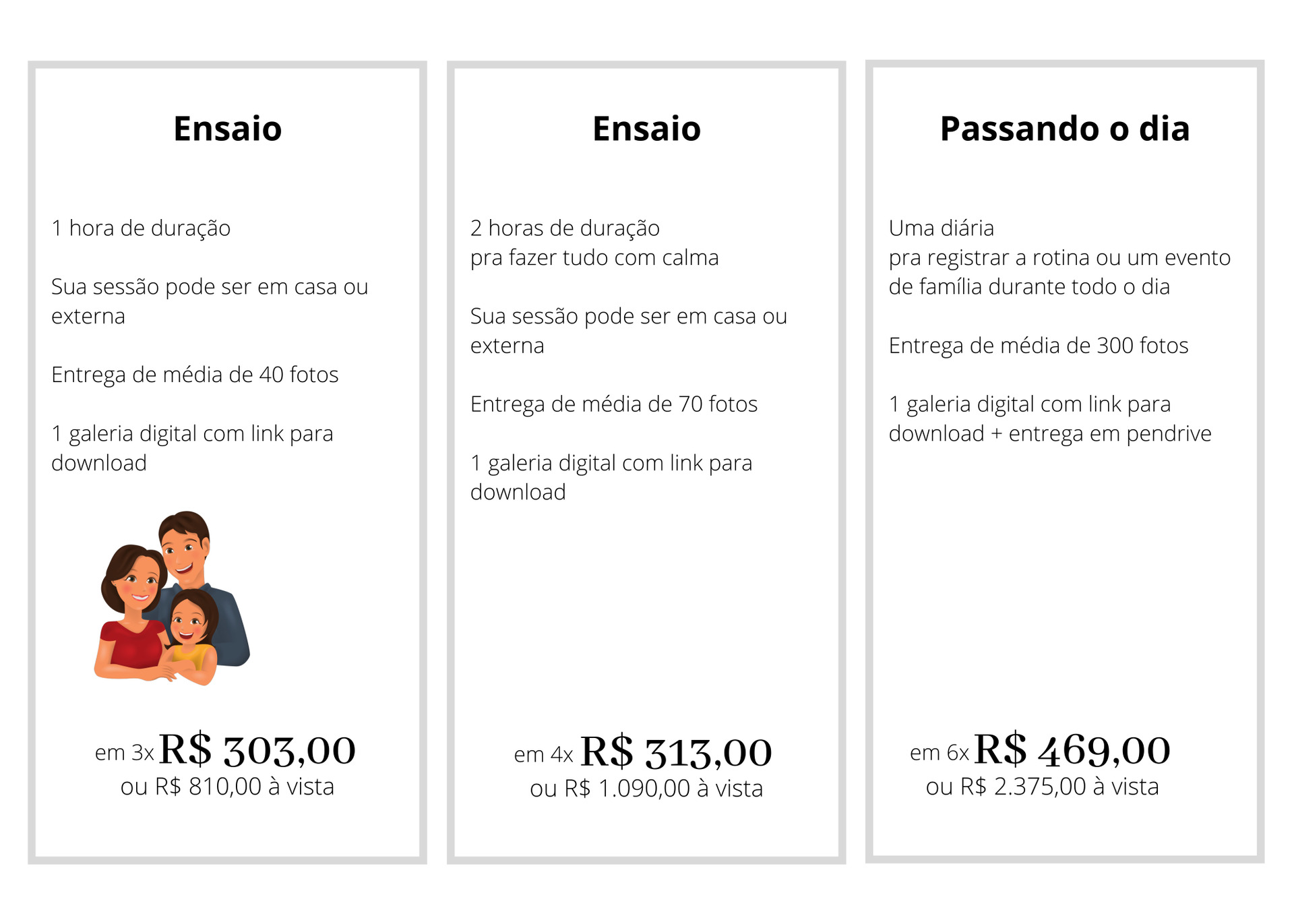 R: Primeiro passo será verificar a disponibilidade da agenda da fotógrafa. A reserva da data e horário se dará mediante contrato e confirmação da entrada.