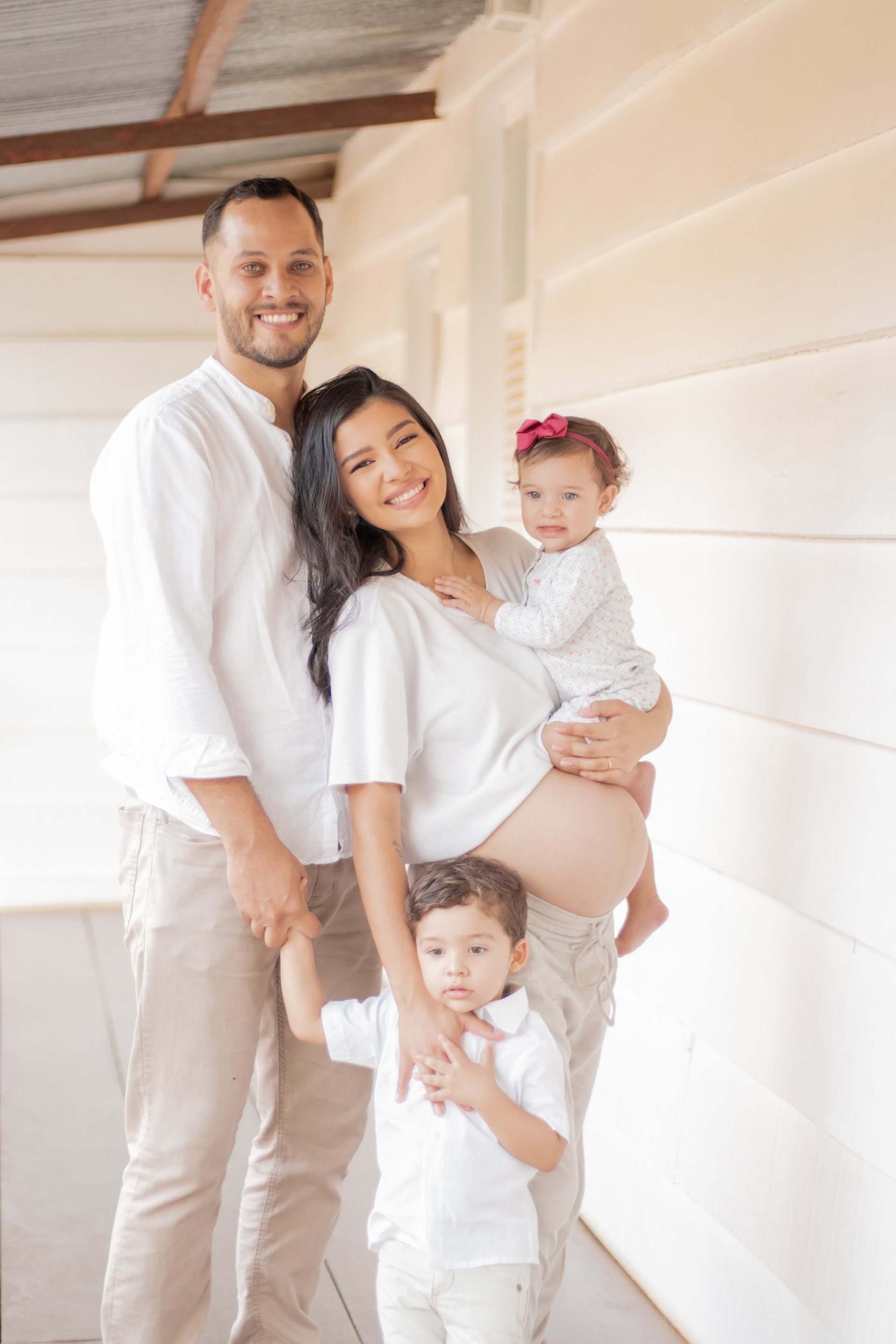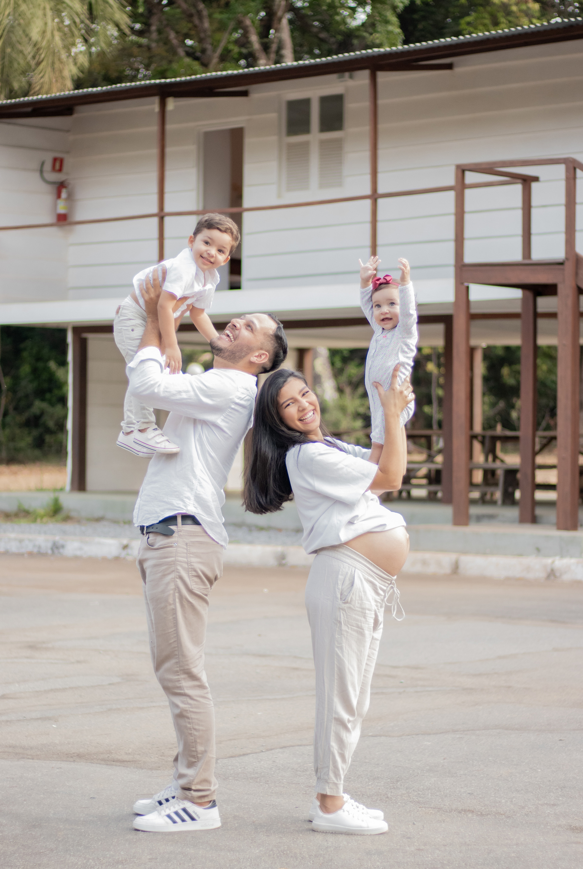Com quem fazer? Você pode fazer o ensaio sozinha de forma mais intimista ou fazer o ensaio com toda a família. Aqui todos são bem-vindos, inclusive os pets.